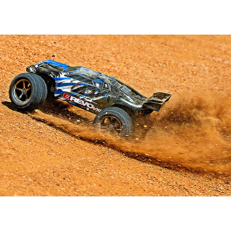 - Das Traxxas E-Revo 1:16 RC-Auto ist komplett montiert und fahrbereit