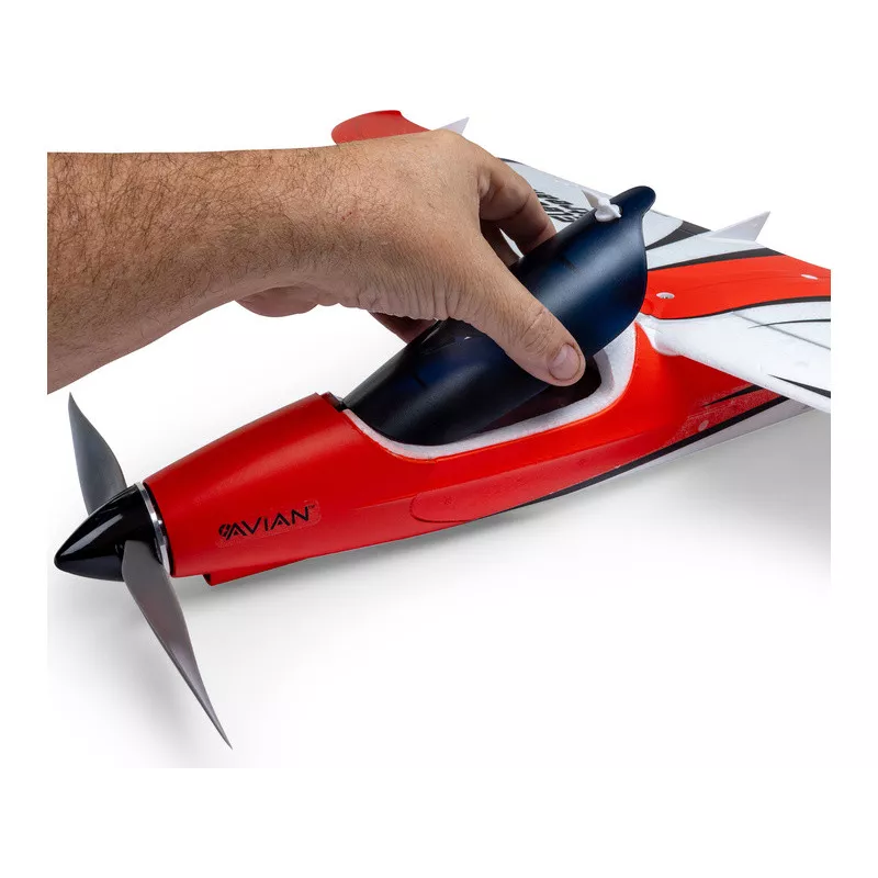 Geschwindigkeits- und Kunstflugbegeisterte werden die Präzision der vier digitalen Servos und die Möglichkeit, optionale Flaperons und Spoilerons einzustellen, zu schätzen wissen. Die schlanke Flugzeugzelle ist vollständig verbundverstärkt und aus hochdichtem EPO-Material gefertigt, was eine starke und starre Flugzeugzelle gewährleistet. Zudem ist es werkseitig in einer hellen, kontrastreichen Farbe gefertigt, um eine bessere Sichtbarkeit und Orientierung zu gewährleisten. Für die Montage wird kein Kleber benötigt. Für einen einfachen Transport und eine einfache Montage ist der Flügel einteilig und mit nur zwei Schrauben befestigt.