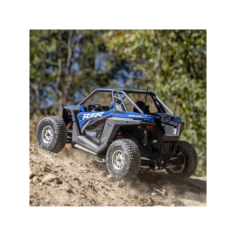 Der Losi Polaris RZR Pro R ist vollständig zusammengebaut und fahrbereit. Er imitiert das Aussehen eines echten Großwagens mit geformten Karosserieteilen, einem Überrollkäfig und offiziell lizenzierten BFGoodrich KM3-Reifen auf Raceline A93 Podium-Felgen. Das Modell verfügt über einen Spektrum AC-Antrieb, der mit einem 2S- oder 3S-LiPol-Akku (nicht im Lieferumfang enthalten) betrieben werden kann und eine Höchstgeschwindigkeit von mehr als 70 km/h erreicht!