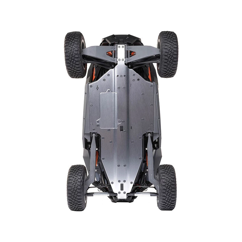 Die Basis der RZR Rey-Plattform ist eine 3-mm-Aluminium-Chassis-Festigkeitsplatte mit einer 2,5-mm-Oberplatte für zusätzliche Haltbarkeit. Die Unterseite bietet eine hervorragende Gleitfläche beim Fahren im Gelände und weist gleichzeitig eine hohe Festigkeit und Steifigkeit auf.