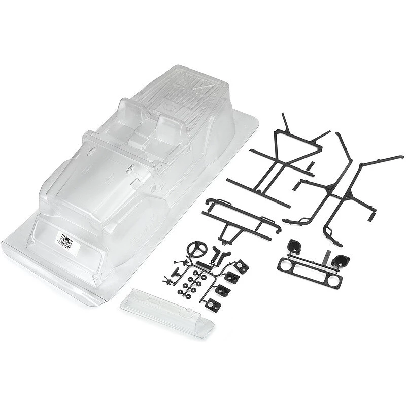 Pro-Line 1:10 Toyota Land Cruiser FJ40 Karosserie mit 313 mm Radstand. Passend für Expeditions- und Rock Crawler RC-Modelle (SCX10). Klare Karosserie aus robustem Lexan, muss lackiert werden. Fenstermaske und Aufkleberbogen runden den Look ab.