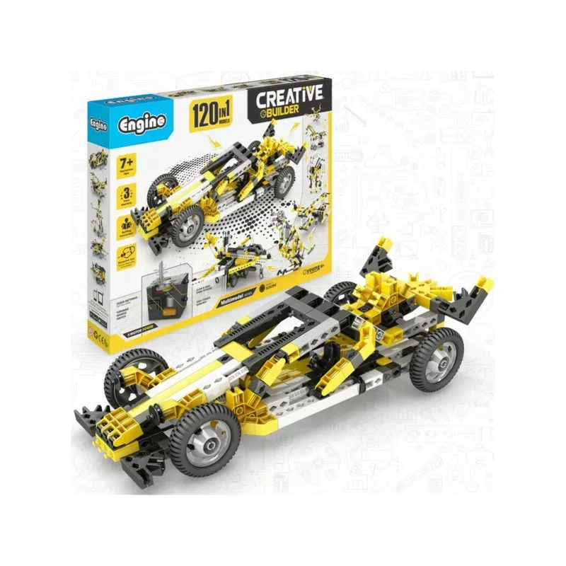 Engino Creative Builder 120 Modelle + Motor, ist der größte Engino-Bausatz dieser Serie. Enthält einen Elektromotor zum Bewegen der Modelle. Lez baut 120 Modelle aller Themen rund um bewegliche Dinge wie Flugzeuge, Motorräder, Autos, Baumaschinen und sogar niedliche Tiere. Ihrer Fantasie sind keine Grenzen gesetzt und Sie können Modellflugzeuge und Kampfflugzeuge, mehrere Formelautos und Dragster, große Bagger oder Jeeps und sogar Buggys oder Vierräder bauen. Interessieren Sie sich für die Tierwelt? Baue einen Drachen oder eine Vogelspinne. Interessieren Sie sich für Mechanik und deren Funktionsweise? Dann finden Sie hier Schaukeln, Katapulte, Karussells und ein Riesenrad. Empfohlenes Alter: 7+.