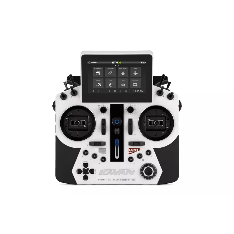 Die KAVAN V20 Pro ist eine High-End-24-Kanal-Fernsteuerung für anspruchsvolle Modellbauer. Sie verfügt über ein brandneues Dreiband-TD-Pro-Übertragungssystem mit umfassender Telemetrieunterstützung. Die Fernsteuerung zeichnet sich durch eine erstklassige Reaktionszeit von bis zu 4 ms und eine Reichweite von bis zu mehreren zehn Kilometern aus. Alternativ stehen die Übertragungssysteme TW/TD/ACCESS/ACCESS R9/ACCST D16, ebenfalls mit Telemetrie, zur Verfügung. Die V20 Pro ist daher mit einer Vielzahl von KAVAN- und FrSky-Empfängern kompatibel, ob telemetrisch oder nicht, mit klassischen PWM- und S.BUS-Ausgängen. Die V20 Pro eignet sich für fortgeschrittene und sportliche Piloten. Es eignet sich hervorragend zur Steuerung verschiedener Flugzeugmodelle oder Hubschrauber/Multicopter. Sie können es beispielsweise problemlos für Schiffe oder Landmodelle einrichten. Hierfür stehen Ihnen zahlreiche Funktionen und Einstellungen des Betriebssystems ETHOS™ zur Verfügung. Diese lassen sich bequem über das große, helle Touchscreen-Farbdisplay an Ihre Bedürfnisse anpassen.