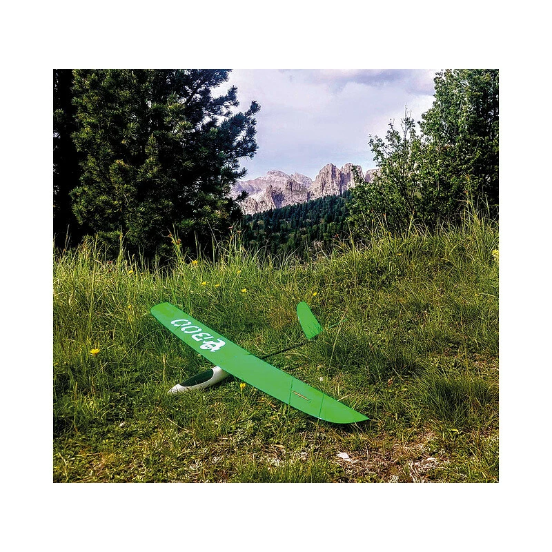 Boo Slope Kit RC-Flugzeugmodellbausatz mit einer Spannweite von 0,8 m. Klein, aber für großen Spaß auf der Piste und in den Wellen im Gelände konzipiert. Das Modell wurde mit moderner 3D-CAD-Technologie entwickelt, die lasergebrannten Holzteile werden mit wenigen Handgriffen verbunden und verklebt. Der Aufbau geht relativ schnell und auch ungeübte Modellbauer schaffen ihn in wenigen Abenden. Der Vorteil ist der fertige Laminatrumpf , an dem Sie die Flügel- und Schmetterlingsleitwerksflächen befestigen.