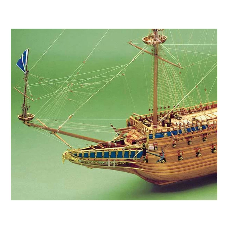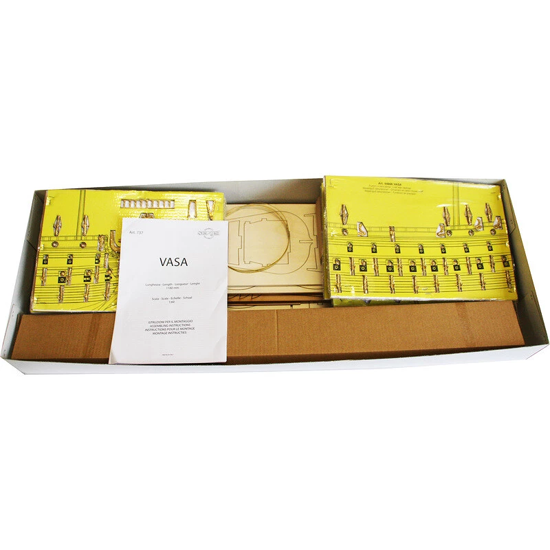 Ein umfangreicher Bausatz eines großen, nicht schwimmenden Modells eines historischen Schiffs für anspruchsvolle Modellbauer. Das schöne und große Schiff Vasa im Maßstab 1:60 aus dem Jahr 1768 hat eine Länge von 1180mm und kann daher sehr detailliert verarbeitet werden. Im Kunststoffblister finden Sie eine große Anzahl an Holz- und Metallelementen, ein Hardware-Set mit der größten Anzahl sorgfältig gefertigter und vergoldeter Gussteile, die bis ins kleinste Detail verarbeitet sind und die Sie direkt beim Bau verwenden können. Zahlreiche Zeichnungen im Maßstab 1:1 ermöglichen den Vergleich gefertigter Teile mit Zeichnungen und erreichen so eine hohe Genauigkeit. Das Modell ist sehr aufwändig und daher nicht für Anfänger gedacht.