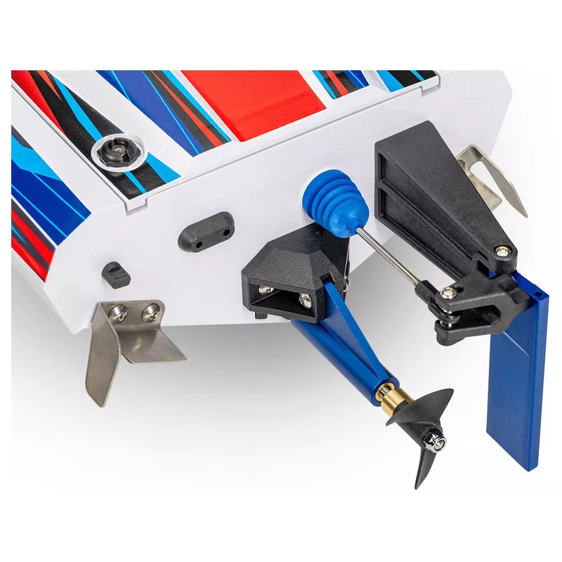 Das Rumpfdesign im Rennboot-Stil wurde so modifiziert, dass es beim Kentern gut mit der automatischen Wendefunktion zusammenarbeitet. Der Schwung des Motors wird auf völlig neue Weise genutzt, um das Modell sofort zu drehen. Die verkürzte Schaftlänge sorgt für betriebliche Effizienz. Zur effizienten Wärmeabfuhr von Motor und Steuerung ist eine doppelte Wasserkühlung verbaut.
