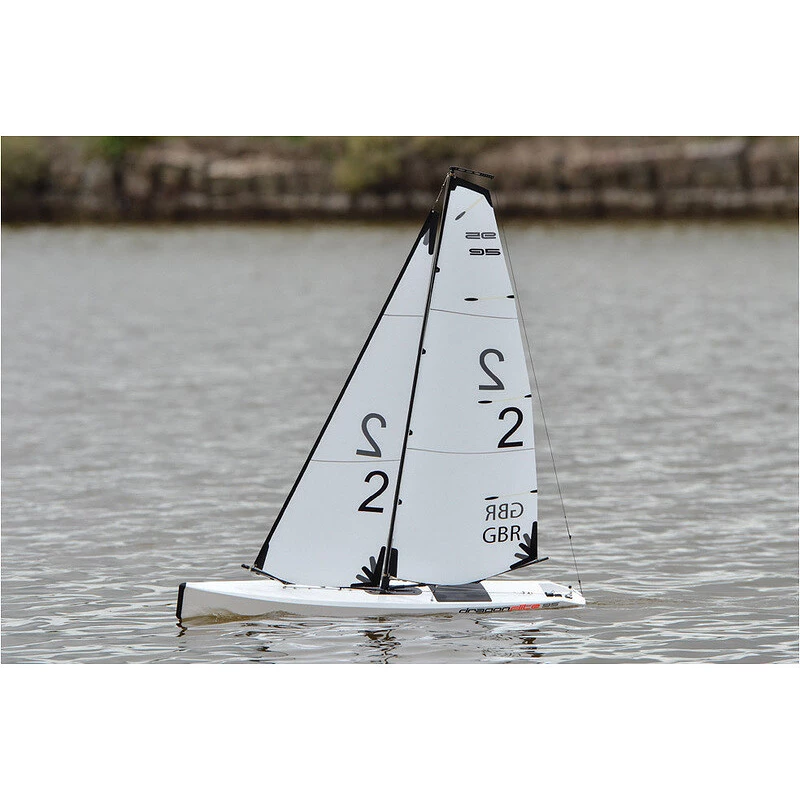 Dragon Flite 95 ist eine Fernbedienung für RC-Segelboote. Der schlanke und ungewöhnlich schmale Rumpf wurde sorgfältig getestet und ist auf minimale Wasserbeständigkeit ausgelegt. Der Kiel besteht aus Karbonmaterial, Segel aus Mylar, Mast und Ausleger aus Karbon, eine spezielle 9g-Servorolle mit Metallzahnrädern. 2,4 GHz RC-Kit.