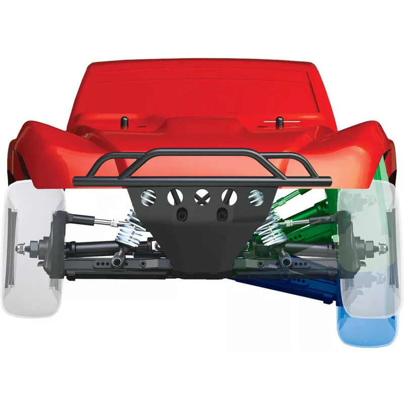 Die werkseitig installierten Extreme Heavy Duty-Federungs- und Antriebskomponenten bestehen aus den langlebigsten Materialien, die Traxxas verwendet. Hohle Maxx-Antriebswellen, HD-Arme, hochfeste Stoßdämpferbrücken und Federbeine sorgen für die stärkste Federung, die jemals für ein Slash-Modell angeboten wurde.