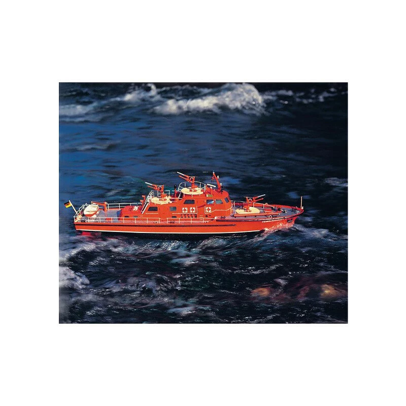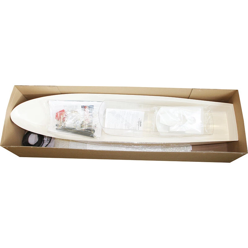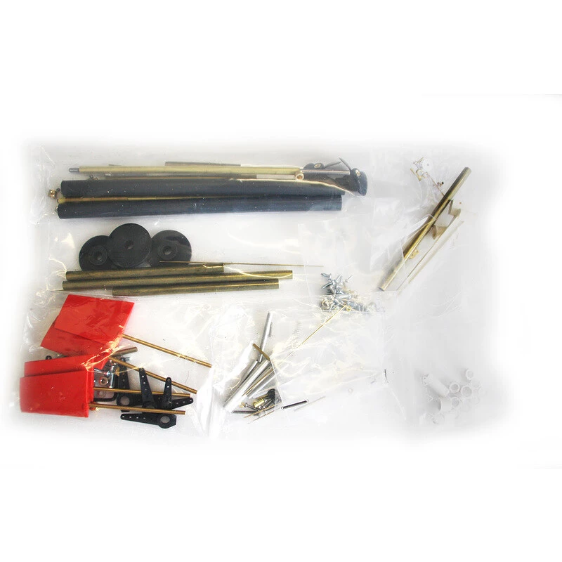 Das Paket beinhaltet alle grundlegenden Teile des Modells, wie z. B. Rumpfformteile, Aufbauten, Verglasungen, Sperrholzausschnitte mit Decks- und Holzkonstruktionen, Antriebskomponenten, Lenkung, Schiffsdetails und viele kleine Accessoires.