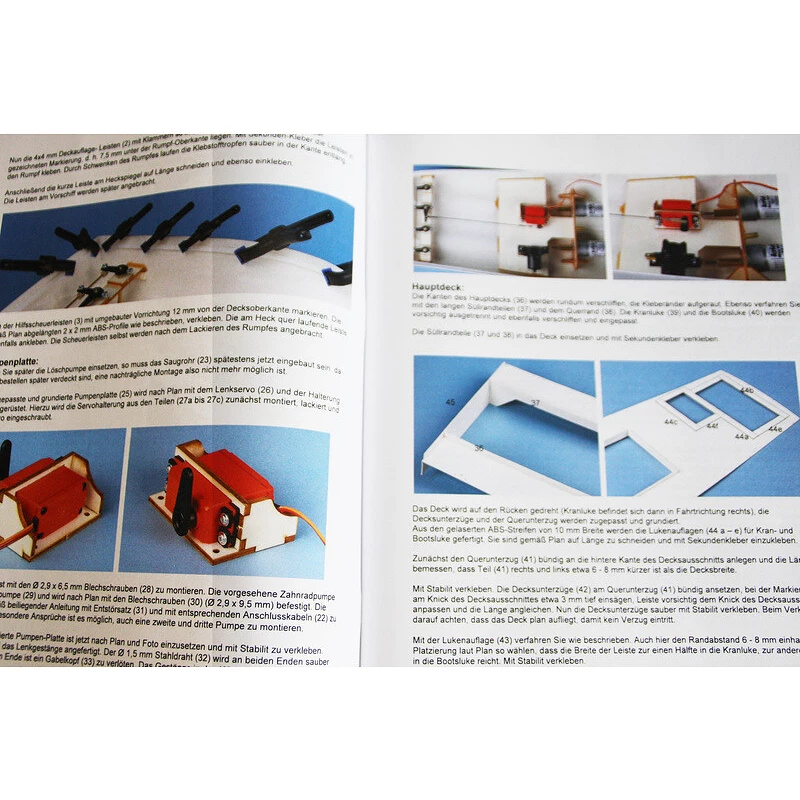 Modell eines Feuerlöschbootes Düsseldorf im Maßstab 1:25 von ROMARIN für Anfänger und Fortgeschrittene. Rumpf und Deck bestehen aus tiefgezogenem Kunststoff-ABS, CNC-bearbeitetem Holz und ABS-Teilen für den RC-Antrieb und die Installation. Komplettes Ruder, 2x Antriebsrohr und Wellen, Propeller und Kupplungen. Detaillierte Bauanleitung, Plan.