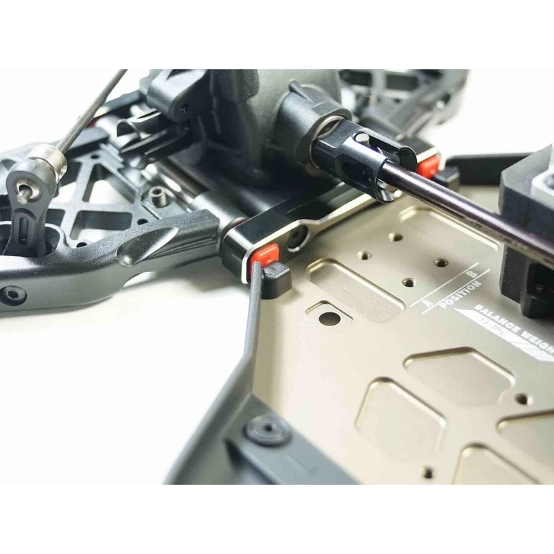 Bausatz eines High-End-Buggy-Rennfahrgestells mit Allradantrieb. Modell ohne Elektronik und RC-Bausatz.