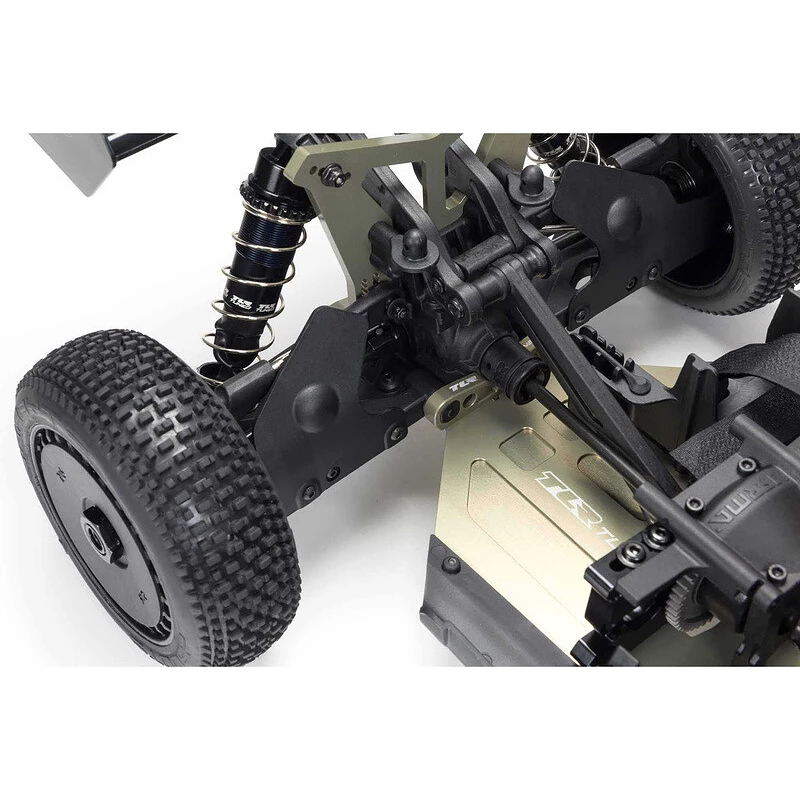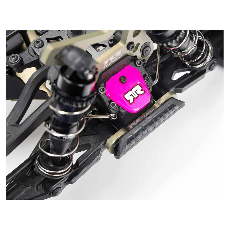 Odolné hliníkové součásti TLR® Tuned zahrnují podvozkovou desku, hřeben řízení, nastavitelné horní a dolní závěsy, tlumiče a přední a zadní věže. Všechny jsou leptány laserem s logem TLR®. Podvozek má také silné kompozitní boční lišty a přední a zadní výztuhy. Nastavitelné tlumiče naplněné olejem mají opracované kuželové písty a distanční sloupky Extreme Bash (EXB).