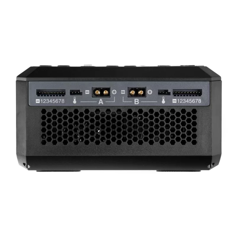 - Max. celkový výkon pro nabíjení 500 W při napájení ze sítě nebo 1600 W při napájení ze stejnosměrného zdroje (při nabíjení jen v jednom kanálu až 1100 W)