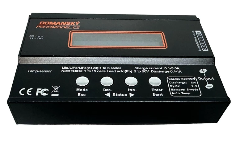 - Pro nabíjení a vybíjení 1 - 16 NiCd/NiMH článků, 1 - 6 Li-ion/Li-poly/Li-Fe článků nebo 2- 24 V olověných akumulátorů