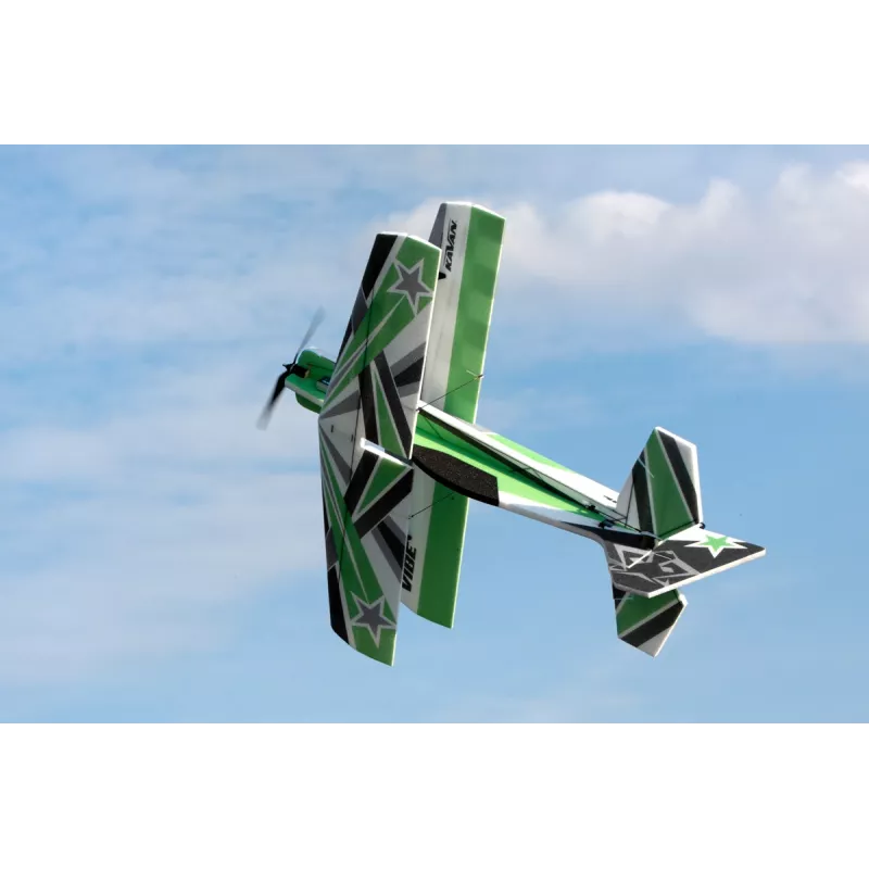 VIBE je vysokovýkonný dvouplošný 3D akrobatický speciál kategorie park-fly z pěnového EPP určený pro pohon střídavými elektromotory o výkonu 350-500 W. Pár hodin s vteřinovým lepidlem v ruce stačí pro dokončení tohoto modelu schopného létat obraty klasické F3A sestavy, stejně jako viset na vrtuli a provádět všechny ostatní 3D kousky! Je určen i pro méně zkušené piloty; s menšími výchylkami s ním může létat každý, kdo má již aspoň nějakou praxi s akrobacií a je schopen spolehlivě létat s předcházejícím modelem přemet, souvrat a výkrut. Díky nízké hmotnosti modelu případné havárie v důsledku „zapletení rukou“ příliš nebolí – a EPP díly se tak snadno opravují!
