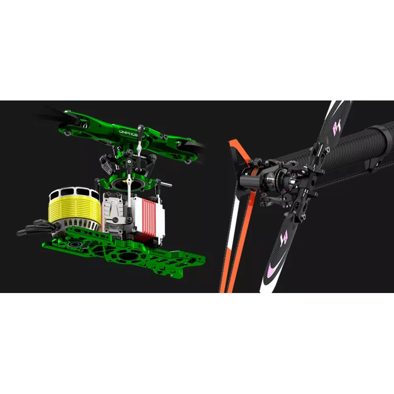 - Celokovová rotorová hlava z vysokopevnostního duralu 7075 s velkým rozsahem výchylek pro vynikající odezvu a autoritu řízení