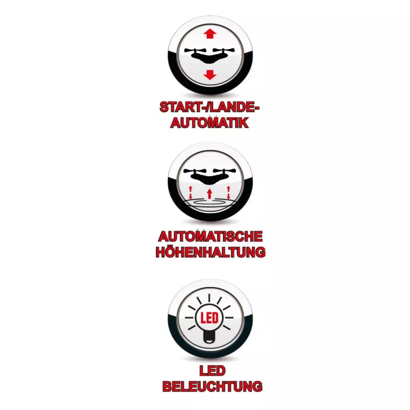 Kamera výkyvná - ručně se dá nastavit úhel kamery. Záběry mohou být uloženy přes WIFI do smartphonu nebo tabletu a obraz je okamžitě přenášen do smartphonu. Bezplatná aplikace je schopná 3D zobrazení, a lze tedy použít i FPV brýle (Obj.č. 1329). Záběry se ukládají na na SD kartu přímo v modelu a v maximální kvalitě. Vzlet a přistání jsou zcela automatické jedním stiskem tlačítka. Barometr - automatické řízení dle nadmořské výšky dělá model snadno ovladatelným pro začátečníky!