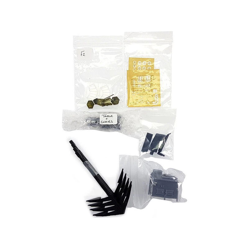 - Vysoce detailní laserem řezaná a gravírovaná dekorace zrcadla a 3D vytištěná figurka Indefatigable