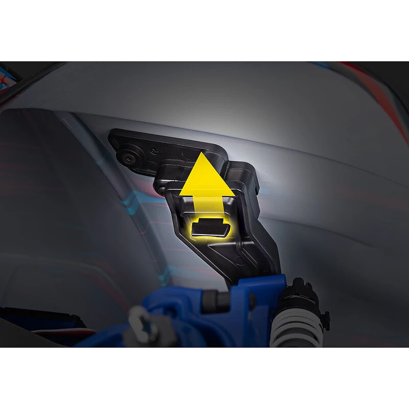 Unikátní systém uchycení karoserie pomocí zobáčků v podbězích kol, umožňuje rychlou a snadnou výměnu baterie a čistý vzhled modelu neruší klipy.