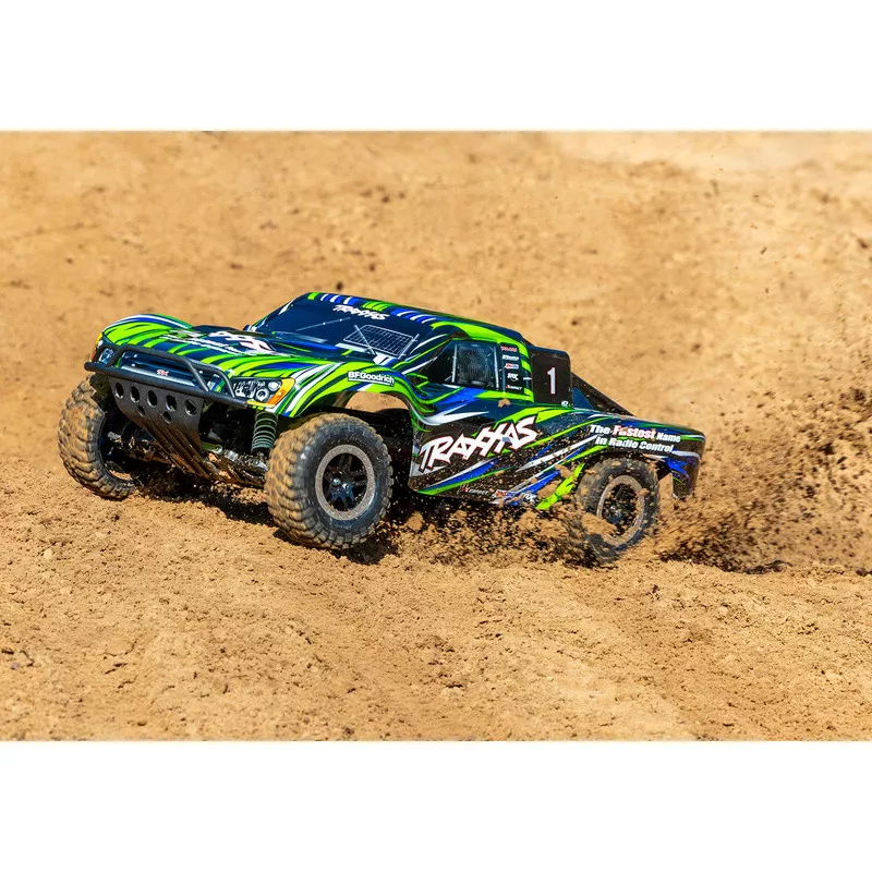 Traxxas Slash je výkonný RC model auta v měřítku 1:10 s náhonem 2WD a rychlostí až 56 km/h. Je plně sestaven a připraven k jízdě. Pohání jej výkonný střídavý motor s regulátorem BL-2S. Jednoduchá RC souprava Traxxas TQ 2.4 GHz poskytuje precizní mechaniku pro přesné řízení. Navíc je model továrně vybaven komponenty sady Extreme Heavy Duty pro vysokou odolnost a exkluzivním bez-sponkovým systémem upínání karoserie.