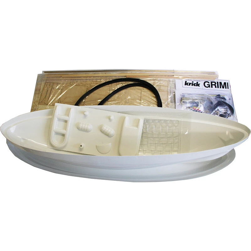 Nádherná stavebnice RC modelu lodi od firmy Krick, přístavní remorkér Grimmershörn. Model je určen pro pokročilé lodní modeláře. Obsahuje plastový trup z ABS, dřevěné díly paluby a interiéru, lodní šroub s hřídelí, maketové díly a montážní příslušenství.