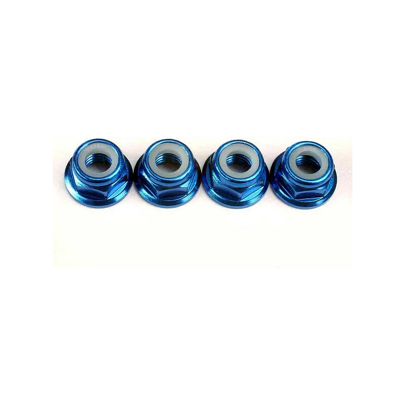 Náhradní díl pro RC modely aut Traxxas: matice M5 samojistná s límcem hliníková modrá (4 ks).