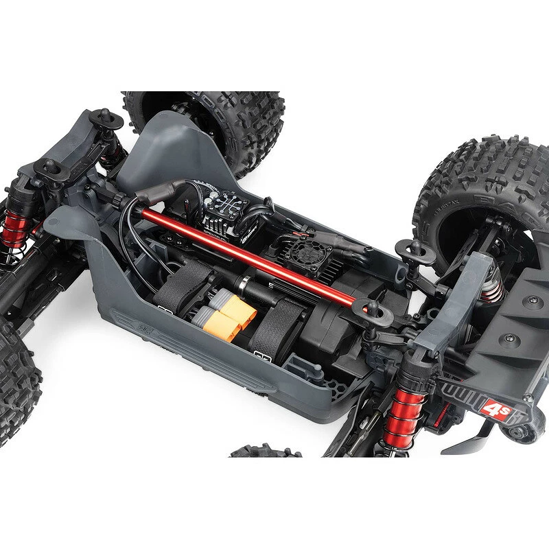 Zmíněné vylepšení se kombinují s osvědčenými vlastnostmi ARRMA 4S BLX jako jsou – hliníkové olejové tlumiče s dlouhým chodem, široké robustní ramena, až po kovové diferenciály a ocelové přední a zadní hnací hřídele EXtreme Bash CVD pro nezastavitelný přísun výkonu. Šasi modelu rovněž obsahuje populární snadno přístupnou modulární konstrukci ARRMA, aby byla běžná údržba rychlá a jednoduchá.