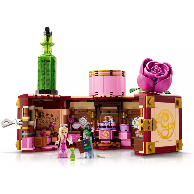 Děti naskenují skrytý QR kód stavebnice, získají přístup k jedinečnému obsahu LEGO® Wicked a zazpívají si s nimi píseň „Popular“ z filmu. Když děti postaví minipanenky na otáčející se stojan, postavičky začnou „tančit“! Až si děti dohrají, zavřou pokoj a promění ho v Glindin kufr, který lze uzamknout klíčem!