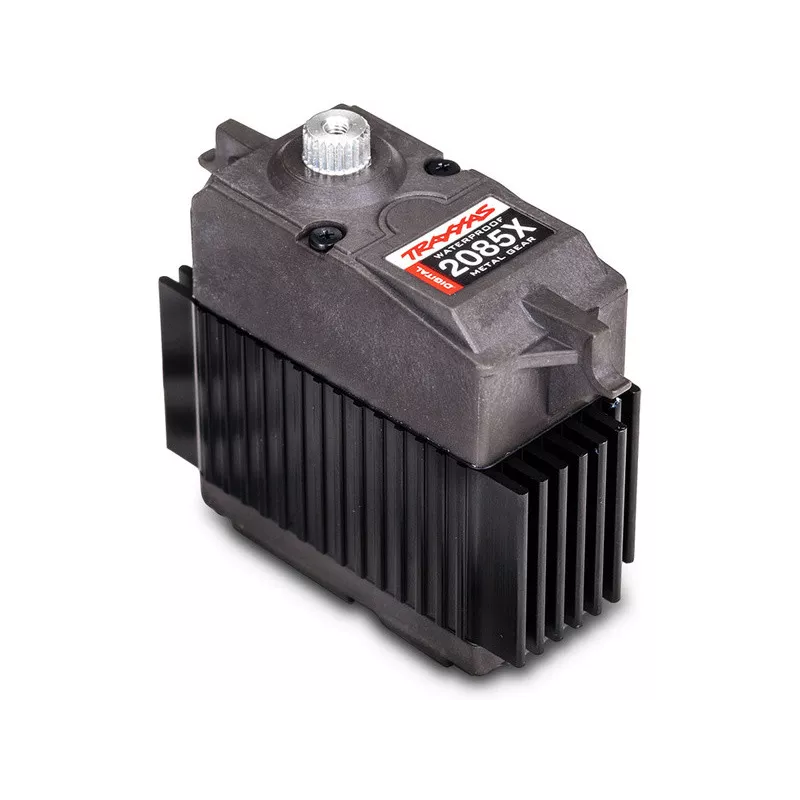 Die Lenkung erfolgt über ein robustes, digitales Servo von Traxxas – TRA2085X. Das Maxi-Servo bietet ein Drehmoment von 32 kg·cm und eine Geschwindigkeit von 0,16 s/60°. Es verfügt über Metallgetriebe und ein doppeltes Kugellager auf der gefrästen Welle für präzise Funktion. Die wasserdichte* Konstruktion sorgt für optimale Kühlung des Servos durch einen zentralen Kühler.