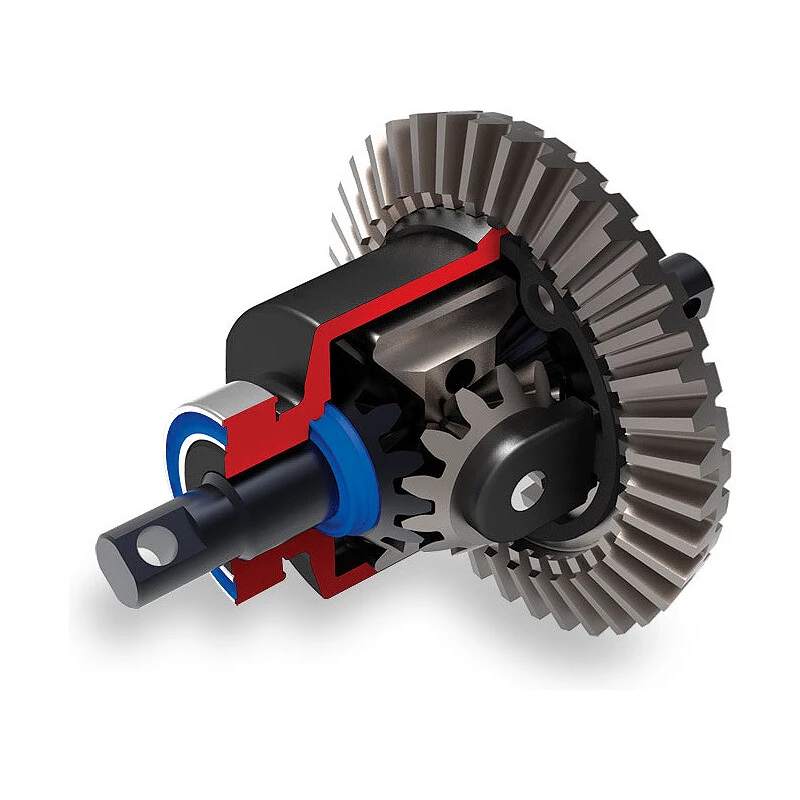 Die Kraftverteilung zwischen den einzelnen Rädern wird durch ein vorderes und hinteres Differential mit Metallzahnrädern für maximale Haltbarkeit gewährleistet. Die Differenziale sind mit Öl gefüllt, dessen Dichte die Haftung des Differenzials beeinflusst (höhere Viskosität des Öls = höhere Haftung des Differenzials).