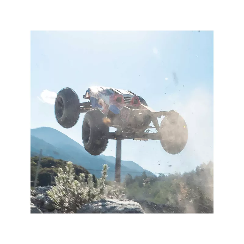 Da der bürstenlose Antrieb für 4-6S LiPo-Akkus ausgelegt ist, können Sie zunächst mit einem 4S LiPo-Akku (separat erhältlich) fahren und später, sobald Sie Ihre Fahrkünste verbessern, einen 6S LiPo-Akku (separat erhältlich) anschließen, um Leistung und Geschwindigkeit auf bis zu 104 km/h zu steigern. Ein weiteres Merkmal ist die Möglichkeit, die Gashebelleistung am Sender auf 75 % oder 50 % zu begrenzen, wodurch das Modell auch für weniger erfahrene Fahrer geeignet ist.