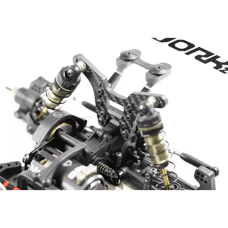 Das S12-2CE EVO-Chassis verfügt über ein brandneues 5,5-mm-Kugelstiftsystem. Eine verstellbare Ackermann-Platte und Carbon-Lenkplatten sind ebenfalls im Lieferumfang enthalten. Der S12-2C EVO verfügt über neue gebogene Unterarme, die eine niedrigere Dämpferposition und damit einen niedrigeren Schwerpunkt gewährleisten.
