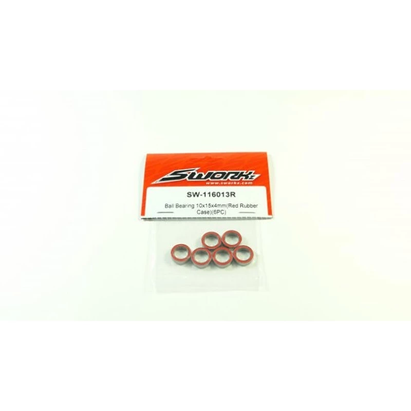 SWORKz Kugellager mit rotem Gummi. Staubwedel 10x15x4mm, 6 Stk.