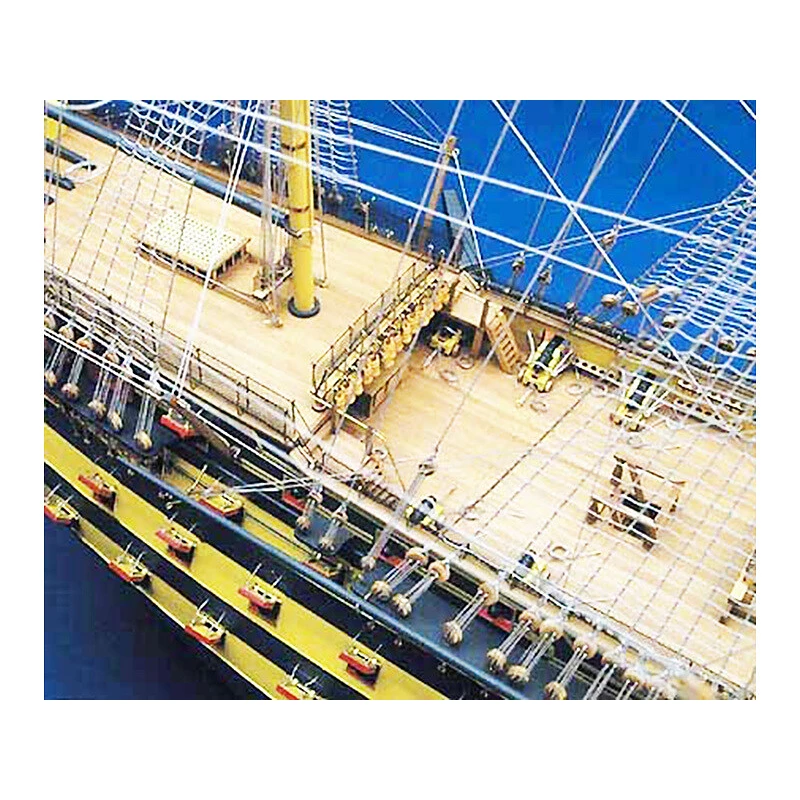 Bausatz eines großen nicht schwimmenden Modells Mantua Model HMS Victory Panart im Maßstab 1:78 und einer Länge von 1,3 m. Ein hervorragendes Modell des Flaggschiffs von Admiral Lord Nelson aus der Schlacht von Trafalgar. Der umfassende Bausatz umfasst lasergeschnittene Holzteile, viele Modelldetails, Messingätzungen und Metallgussteile, Baupläne und Anweisungen in Italienisch, Englisch und Deutsch. Ein Bootsständer ist ebenfalls enthalten.