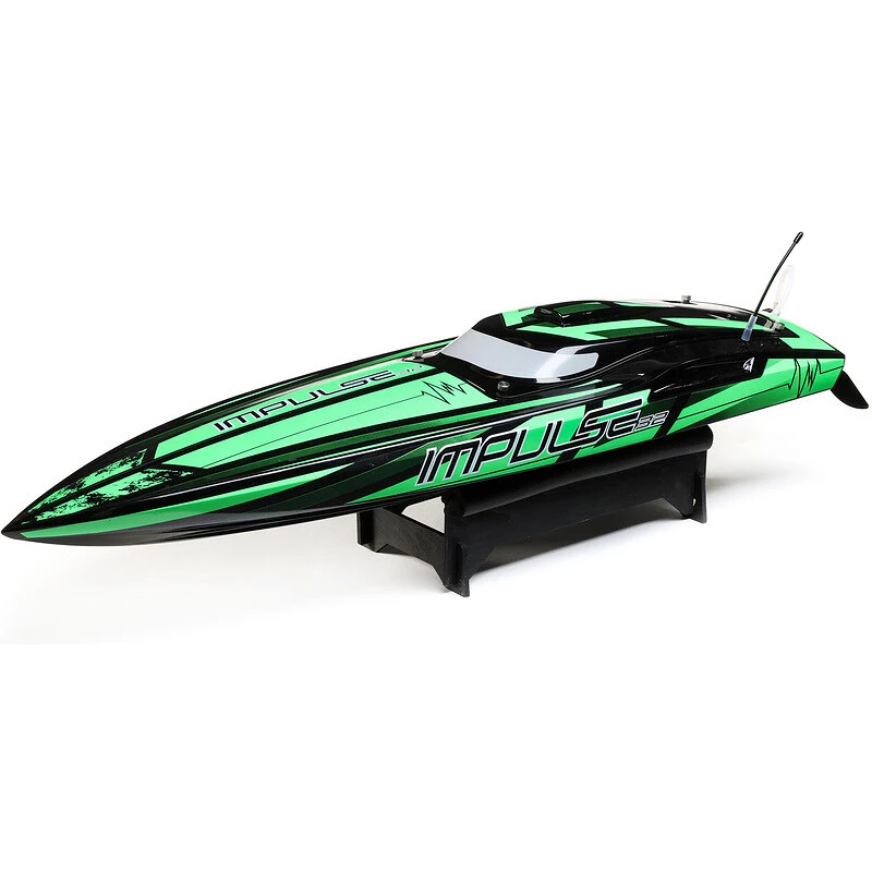 Das Schnellboot Impulse 32 mit Deep-V-Rumpf steht für maximale Leistung und Qualität. Es kombiniert einen wettbewerbsfähigen Laminatrumpf mit einer leistungsstarken Antriebseinheit. Von extremen Geschwindigkeiten von bis zu 88 km/h werden Sie nicht genug bekommen. Leistungsstarker wassergekühlter Motor Spektrum ™ 1900 KV zusammen mit einem wassergekühlten Controller Smart Spektrum Die Firma ™ 160A kann eine Leistung von bis zu 3 PS abgeben und erreicht eine Geschwindigkeit von bis zu 88 km / h! Dank des werksseitig konstruierten Deep-V-Laminatrumpfes ist es perfekt mit dem Wasser verklebt. Einstellbare Trimmruder stabilisieren das Boot bei unglaublich hohen Geschwindigkeiten. Und das alles bei präziser Kontrolle auch unter den härtesten Bedingungen auf dem Wasser.