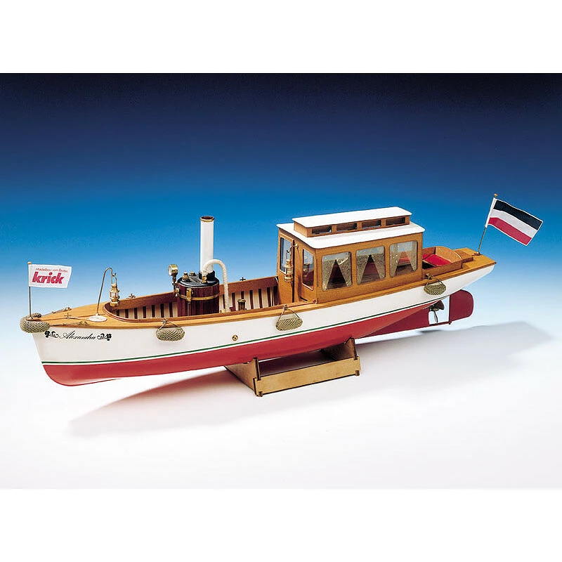 Alexander Modell dampfbetriebenes Bootsmodell im Maßstab 1:10. Dieser Schiffstyp wurde zu Beginn des letzten Jahrhunderts eingesetzt. Alexandra ist ein ideales Modell für den Einstieg in die Welt des Dampfes. Die Konstruktion besteht aus lasergeschnittenen Holzteilen und einem fertigen ABS-Rumpf. Die Konstruktion erfordert keine besonderen Kenntnisse. Das Kit ist ohne Dampfmaschine.