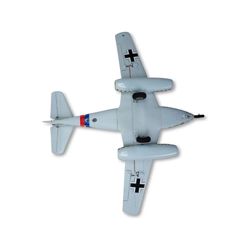The E-flite® UMX™ Me 262 ulta-micro RC model aircraft with a wingspan of 0.66m is a replica of the very first jet fighter. The model has two 30mm electric stirrers with AC motors to power 3S LiPo batteries, which provide the high performance of the model, while keeping it affordable to operate. The smaller size of the model allows it to be used in more places and in smaller spaces such as parks or sports fields.