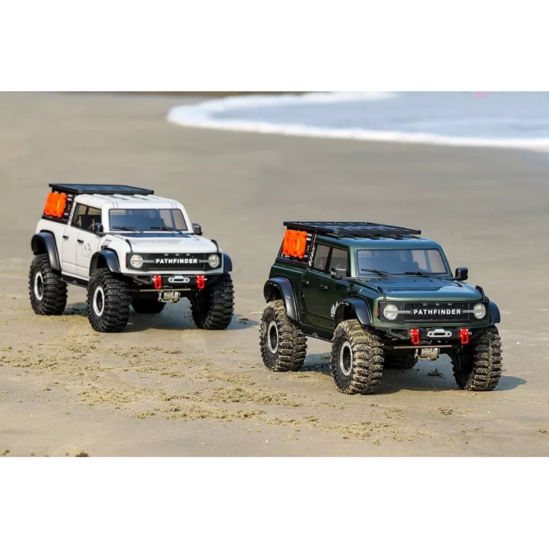 The Pathfinder is a brand new 1/10 scale expedition model based on the LC76 chassis platform (RESCUER model) and aims to build a rock crawler with a long wheelbase. The 355 mm long wheelbase gives the vehicle a smoother and more stable driving experience.