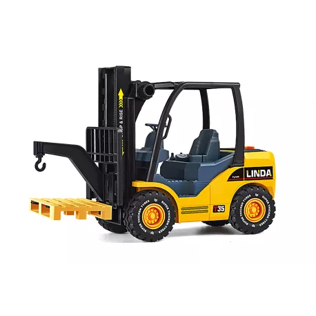 Forklift with effects with pallet. Dimensions 31x10.5x18 cm. Package contents - truck, pallet. On the flywheel. Emit light and sound effects. Activation by buttons on the back (engine sound, lifting, tr