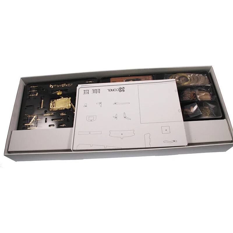 Models of wooden models of non-floating Corel ships are popular among ship modelers for their quality workmanship, high content of details and pre-processed accessories. The wooden parts are cleanly cut on CNC machines and the kit has a high content of details. The kit does not contain adhesives, paints, varnishes, tools and the necessary modeling equipment. Corel kits include complete construction documentation.