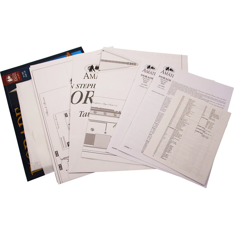 Static model kit of a historic ship, AMATI Dorade sailboat Fastnet cup from 1931 in scale 1:20, kit. One of the first modern yachts ever built. She first set out in 1931 and won traditional regattas. The package includes an ABS hull, wooden interior parts, deck and brass and wooden parts. The sails are for static model only.