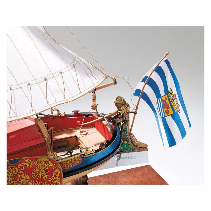 A kit of a non-floating model of the COREL Boeier ship from 1714 in a scale of 1:25. The length is 500 mm. The package includes construction materials. The wooden plywood parts are precisely laser-cut, the hull is built using the double planking method. In addition to the wooden parts of the moldings and accessories, decorations in the form of metal castings, the necessary fittings, canvas, a flag and parts for building a stand are included. The construction is completed with construction plans and a manual.