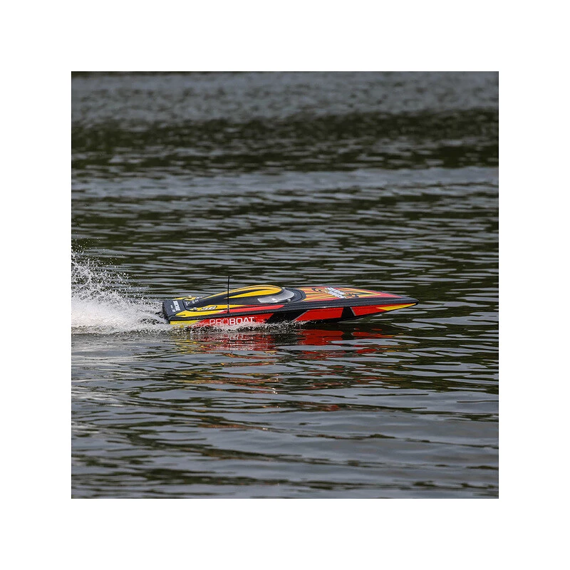 The hull is made of polycarbonate, has a finished color and everything is installed. The large boat with a length of 914 mm is designed for demanding boat enthusiasts, the hydrodynamic slim shape of the hull easily reaches super speed, while safely holding the direction, accelerates quickly from the turn and has high stability. The ship is fully equipped with propulsion and electronics. The set does not contain a drive battery, LiPol min. 5000mAh 2-3S 50C with IC5 connector.