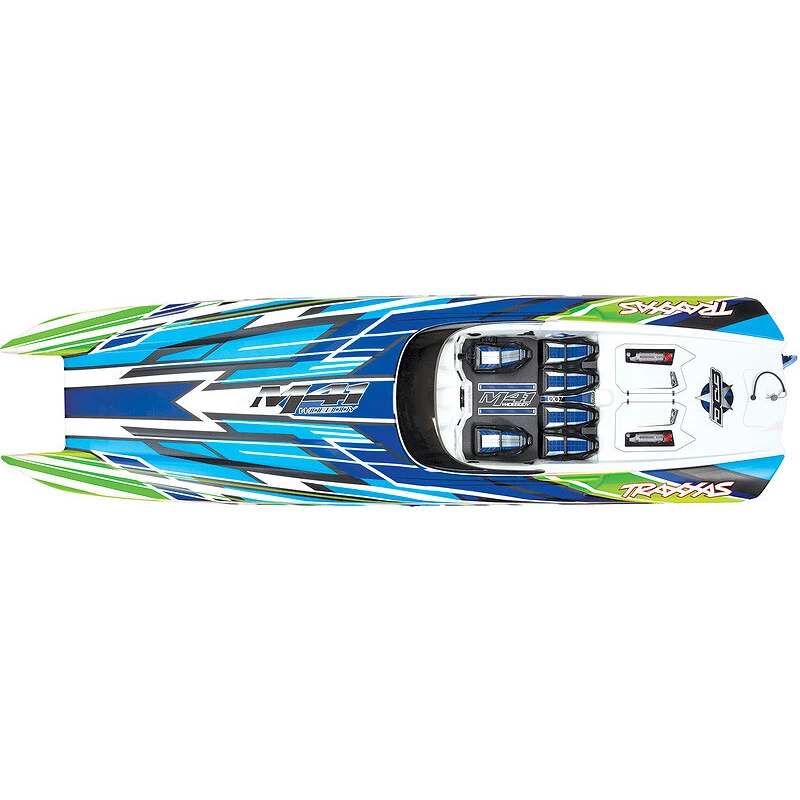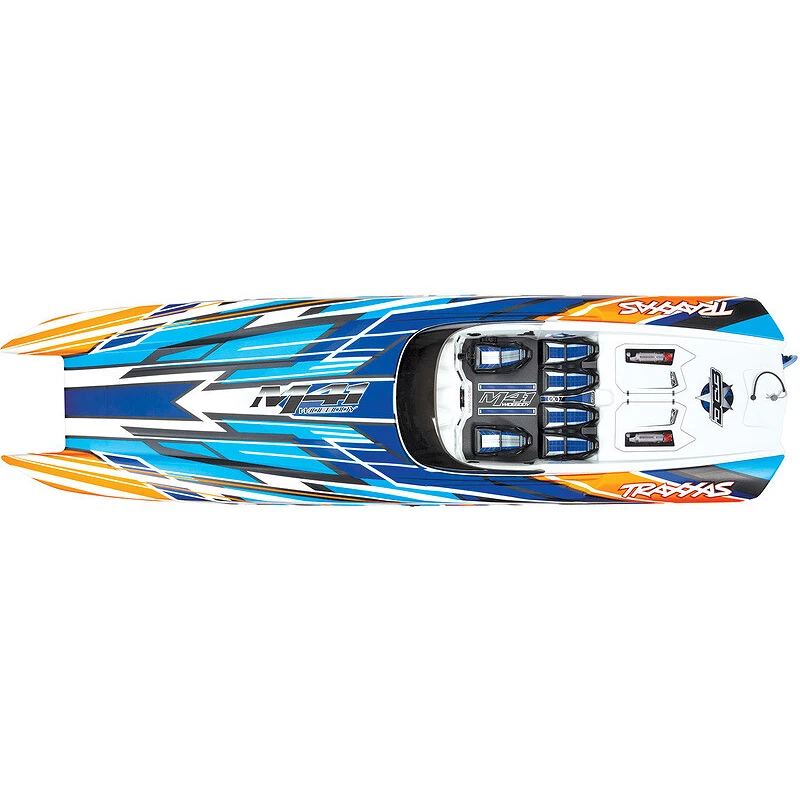 The real racing boat DCB M41, manufactured by Dave's Custom Boats, reaches a speed of over 250 km / h, is powered by a petrol engine with an output of up to 1550 hp. Traxxas has prepared a remote-controlled boat model for you, which will definitely not disappoint you. The length of the fuselage is 105 cm , of course the stabilization Traxxas TSM, RC kit Traxxas TQi and a proven drive. All you need for commissioning are the drive batteries and the charger.
