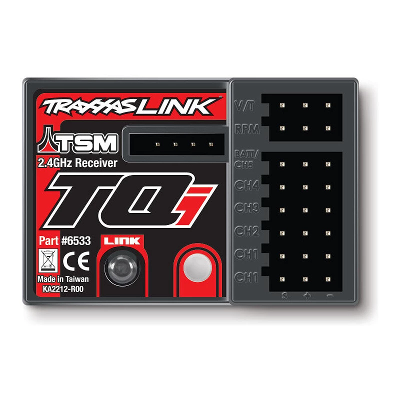 Odbiornik RC Traxxas TQi 5-kanałowy. TSM z telemetrią dla nadajników Traxxas TQi. Prosta obsługa, parowanie za pomocą przycisku. Wskaźnik stanu LED. Są w odbiorniku zintegrowane 3-osiowe czujniki MEMS do nauki położenia odbiornika.