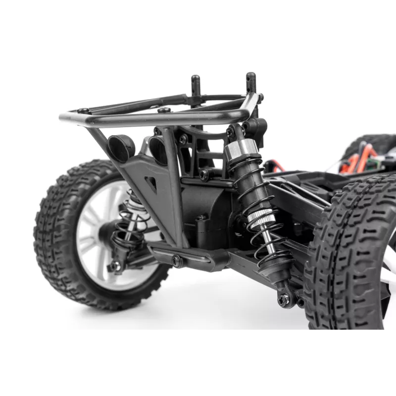 Napęd zapewnia bezszczotkowy silnik 3210 kV sterowany dwukierunkowym regulatorem 60 A. Do sterowania wykorzystano czterokanałowy, proporcjonalny zestaw RC z kierownicą, działający w paśmie 2,4 GHz, z ważnymi ustawieniami, takimi jak trymery, bieg wsteczny i odchylenia kanałów .