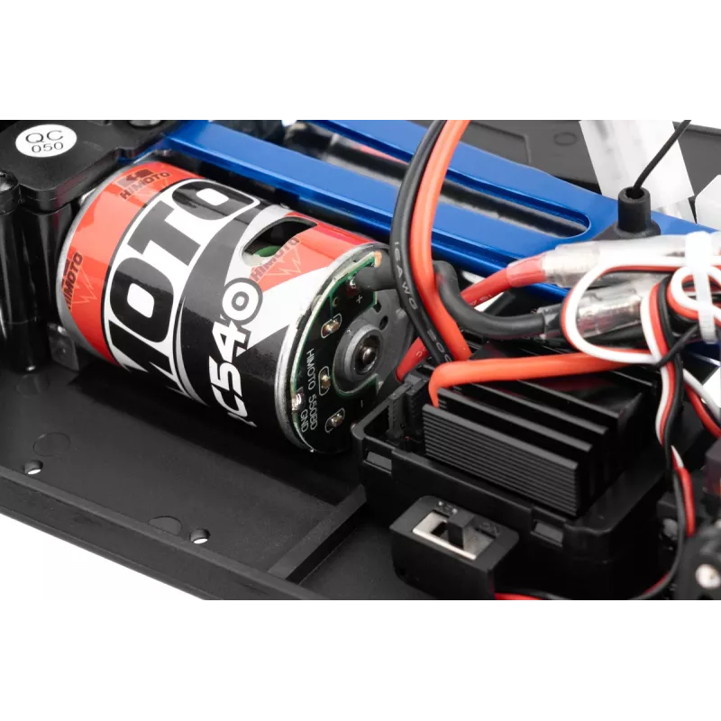 Napęd zapewnia silnik prądu stałego „540” sterowany dwukierunkowym regulatorem 40 A. Do sterowania wykorzystywany jest czterokanałowy, proporcjonalny zestaw RC z kierownicą, działający w paśmie 2,4 GHz, z ważnymi ustawieniami, takimi jak trymery, bieg wsteczny i odchylenia kanałów .