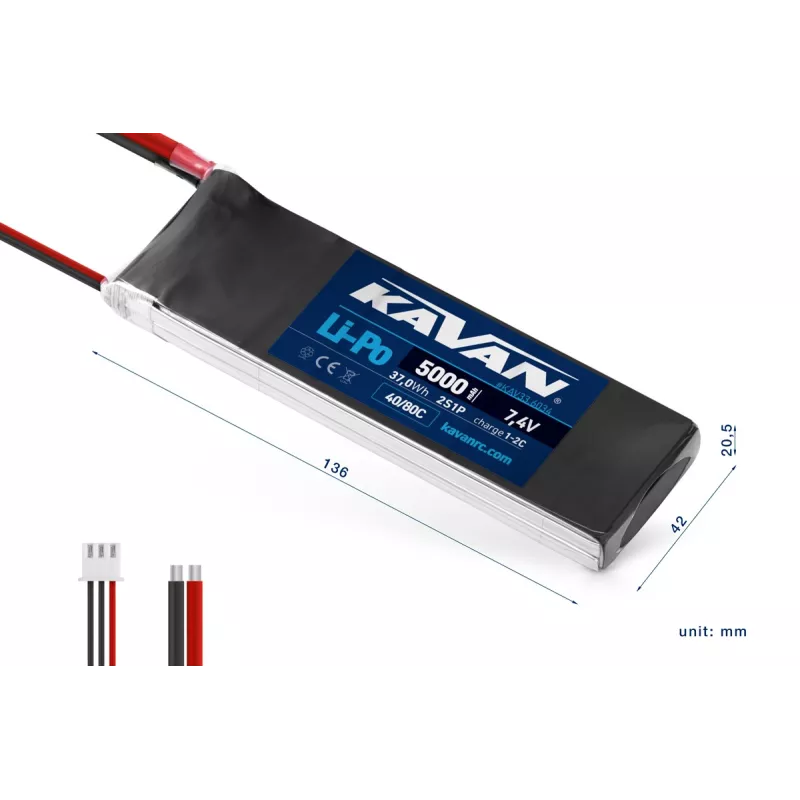 KAVAN Li-Po 5000mAh / 7,4V 40 / 80C 37,0Wh