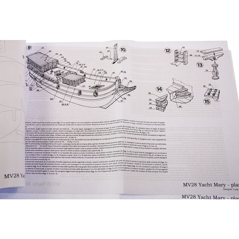 Zestaw niepływającego modelu statku MAMOLI Yacht Mary w skali 1:54. Długość modelu 483 mm, wysokość 479 mm. Budynek w większości wykonany jest z drewna z drobnymi dodatkami, których częścią jest plan budowy. Dzieło, Yacht Mary, zostało zbudowane w Holandii.