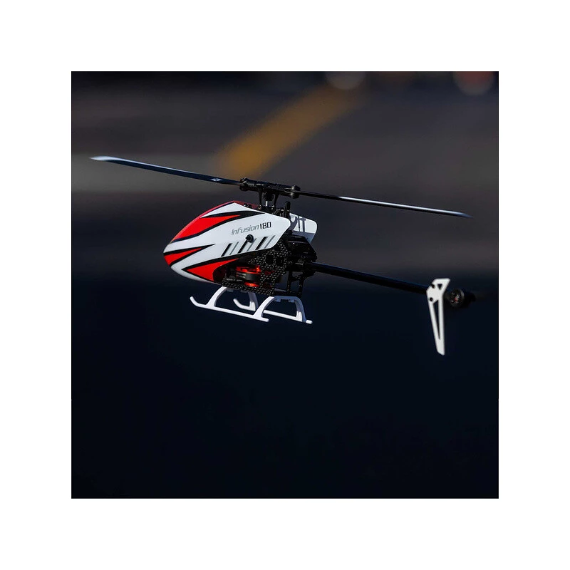 Dzięki ponadgabarytowemu układowi zasilania z napędem bezpośrednim, główny wirnik nie jest napędzany przez żadne koła zębate, co pozwala na uzyskanie chwilowej mocy silnika przy mniejszej liczbie podzespołów. Dla tych, którzy szukają wysokich osiągów w małym modelu helikoptera, InFusion 180 to idealny wybór do ekscytujących akrobacji na małej przestrzeni. Blade InFusion 180 jest dobrze widoczny, ponieważ ma kolorową kabinę, jasnobiały ogon i główne podwozie. Dzięki najnowszej technologii Spektrum technologii, jest on wyposażony w jednostkę sterującą mikrolotami AR6251MHX, która jest profesjonalnie dostrojona, ale ma możliwość ustawienia pilotów tak, aby mogli dostroić samolot do ich stylu latania. Sterownik regulatora Spektrum Smart Avian oferuje również precyzyjną kontrolę prędkości silnika w celu uzyskania wyczynowych lotów. Innowacyjne połączenie materiałów takich jak włókno węglowe, tworzywo ABS i elementy aluminiowe zapewnia doskonałą sztywność i trwałość. Zestaw BNF® Basic jest całkowicie zmontowany i dlatego wystarczy dodać własną baterię 3S 600mAh LiPol, sparować 6-kanałowy nadajnik Spectrum DSMX® i wzbić się w powietrze.